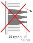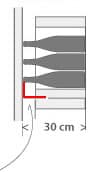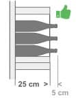 Si vous utilisez un rangement bouteille de moins de 25cm de profondeur, le dépassement des bouteilles augmente le risque d’accrochage et de basculement de celles-ci. De plus, avec un range bouteilles de moins de 25 cm de profondeur, la stabilité des vos casiers sera plus aléatoire et vous devrez obligatoirement la renforcée par un collage ou une fixation murale.