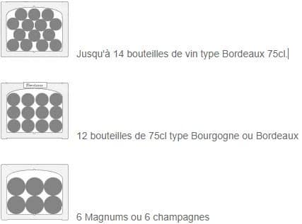 Vous stockerez 12 bouteilles (format Bordeaux 75cl) ou 6 magnums dans chaque élément de cave à vin. C’est suffisant pour un bon classement et pour retrouver facilement toutes vos appellations.
